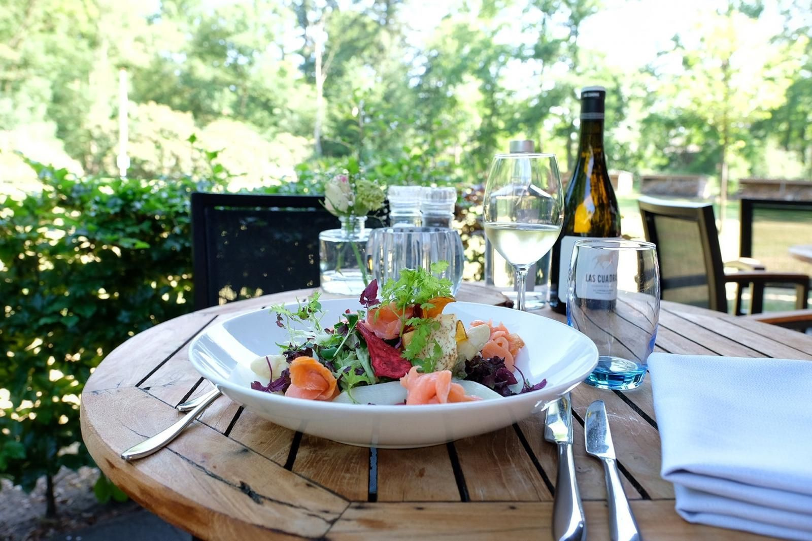 Genieten van een heerlijk wijntje, een goede kop koffie of van één van de versnaperingen van onze Lounge-/Lunchkaart. Op ons terras is het optimaal genieten. De ligging van het terras aan het ruime gazon voor het pand, midden in het bos zorgt ervoor dat u helemaal tot rust komt en weer volledig kunt opladen.